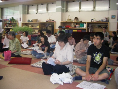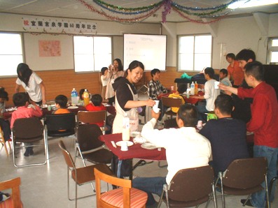 日中活動センターで和やかに中学生と交流(2009年12月)