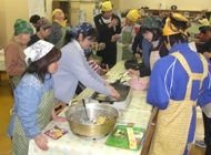 「おこめせんべい作り」に「鍋焼きじゃんけんゲーム」と「紙芝居上演」-。12月15日、室蘭市母恋北町の日中活動センターげんせんで、センター利用者と室蘭市東中、港南中の生徒さんによる交流会が開かれ、師走の1日、和やかなひとときを過ごしました。