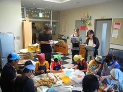 各グループに審査員3名が見に行き審査をするため、皆少し緊張気味でしたが小さい子から大きい子まで協力して調理をしていました。幼児さんも上手に包丁を使いお姉さんです。