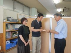 7月16日、(有)信田印刷さんより、自社開業65周年の節目として寄附金いただきました。
