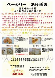 ベーカリーあけぼの 営業時間が変更します!2019年4月12日 掲載