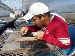 外は雪景色ですが、ビニールハウス内では春に向けて育苗中です。