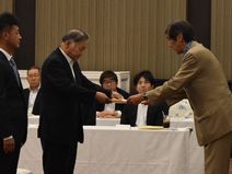 令和元年度第1回理事会にて、法人事業貢献賞の贈呈式が行われました。今年度の事業貢献賞は本部事務局の職員が選ばれました。受賞理由は法人の規模が大きくなっている中、経費の削減や既定の統一、意見の取りまとめなど一定の成果を上げており今後一層の尽力の奨励です。
