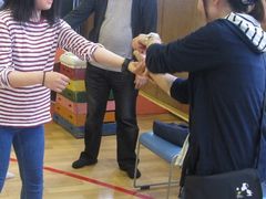 クリスマス会の余韻もそこそこに、2日後にはわかすぎ学園と合同の餅つき会がありました。年神様をお迎えする、という餅つきの由来に始まり、リズムにあわせて力強くぺったんぺったんと餅をつきます。皆で丸めたお餅はきなこ、あんこ、みたらし、納豆、お雑煮の5種類の料理になって会場に並びました。