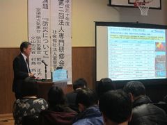 平成31年2月5日に平成30年度第2回法人専門研修会を開催しました。昨今災害が多発しており、北海道胆振東部地震では法人でも全施設の停電や一部では断水も経験し、より一層の災害対策を講じる必要があると考えています。自然環境や災害に対する知識を身につけることで、施設を利用者している方々や職員自身の安全の確保に役立てることができます。