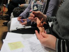 2月22日、27日に第3回法人専門研修会を開催しました。今回は「介護について」第2弾の実践編を北海道福祉教育専門学校 阿嘉優氏にご講義いただきました。前回の基礎編では「初心に戻る」をテーマにグループワークも取り入れていただきましたが、今回は折り紙を折ったり、ビデオを見たりと体験型のご講義をしていただきました。