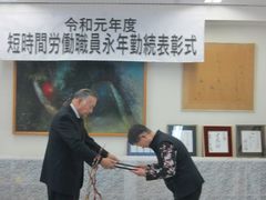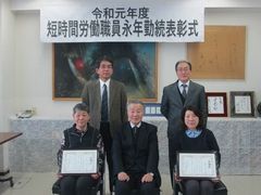 短時間勤務労働職員の永年勤続表彰式を行いました。2019年12月2日 掲載